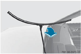 - Push the new wiper blade onto the retaining pin on the wiper arm in the opposite direction to the arrow. Make sure that the wiper blade slides fully onto the retaining pin on the wiper arm.