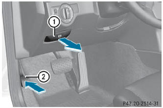 - To apply: depress parking brake 2 firmly. When the engine is running,