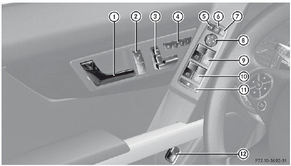 Unlocks/locks the vehicle- Adjusts the seat electrically